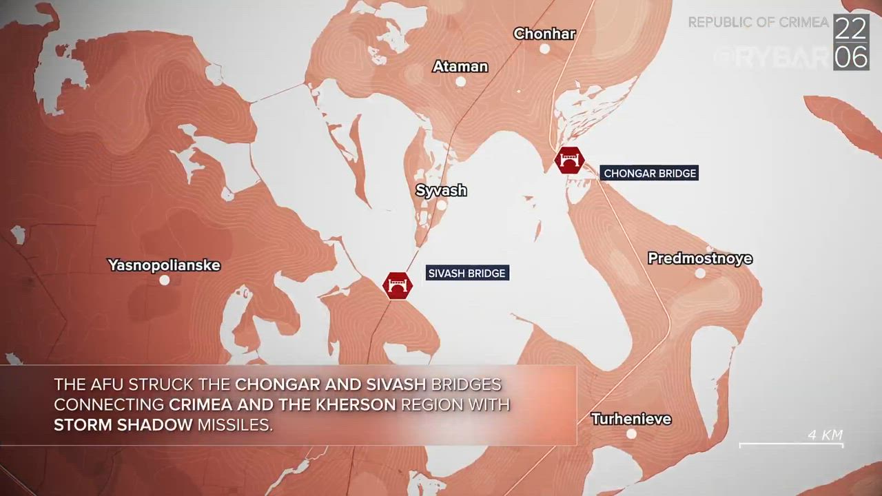 ▪️The AFU struck the Chongar and Sivash bridges connecting Crimea and the Kherson region with British Storm Shadow missiles.