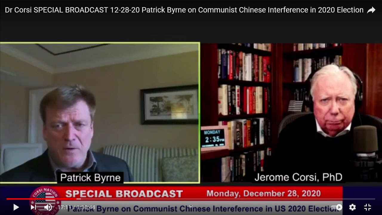 Dr Corsi SPECIAL BROADCAST 12-28-20 Patrick Byrne on Communist Chinese Interference in 2020 Election