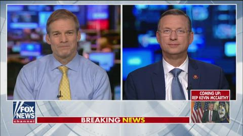 House Judiciary Committee members Doug Collins and Jim Jordan react to the impeachment hearing on Capitol Hill.