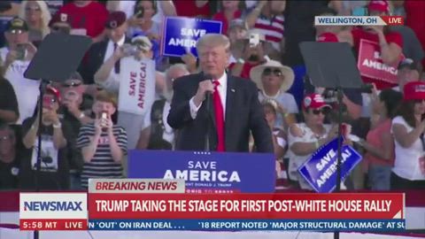 At his first rally since leaving office, Donald Trump calls out the 'fake news' reporters in attendance, and attacks President Biden for 'destroying the nation' in his first five months in office.