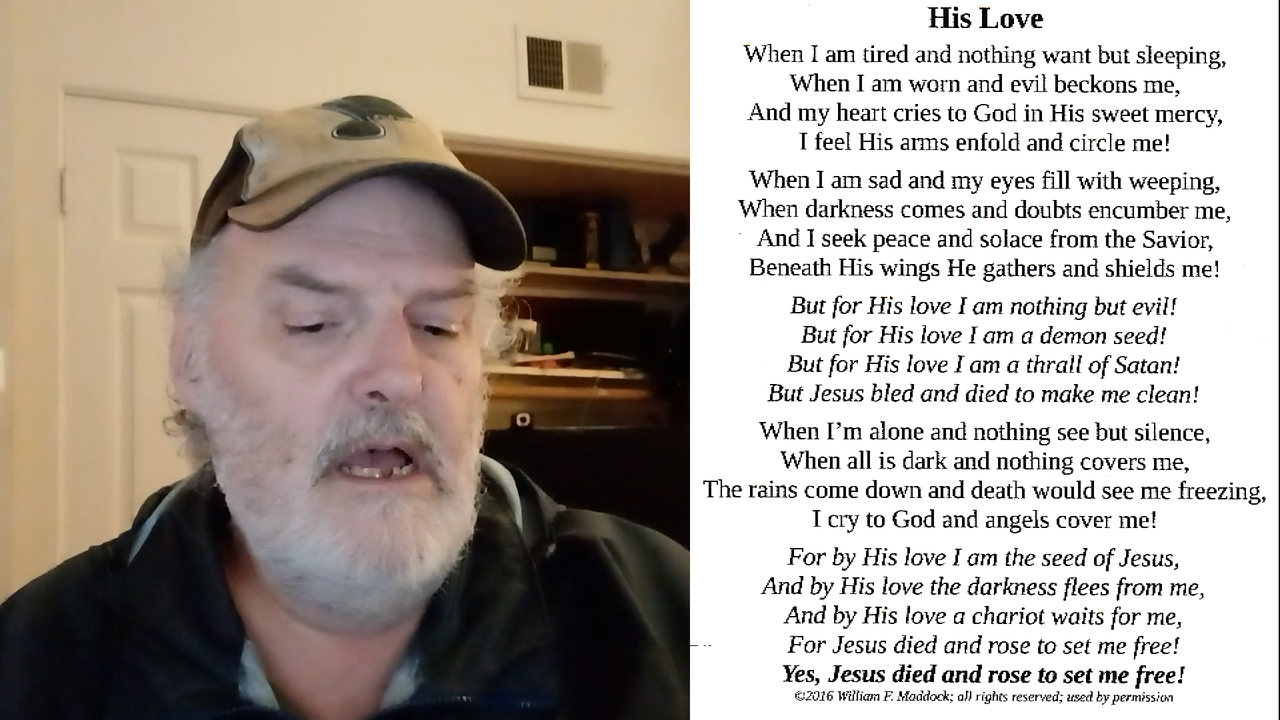 Today, December 27, 2024, I used His Love as a gift to each of two gentlemen that I deal with fairly regularly, Hoping, of course that they would want to sing it, or hear it sung (which, of course cautioned me that I should make sure MY voice is still up to the task).