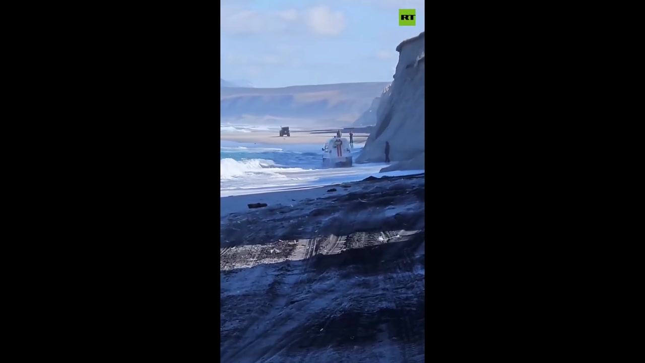 Russia EMERCOM rescue vehicle was nearly swept into the sea by a fierce storm in Sakhalin