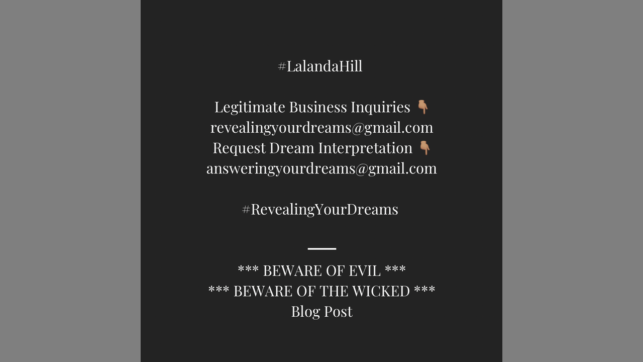 #LalandaHill #revealingyourdreams #dreaminterpretation #understandingyourspiritualworld #teaching #educating #learning #leading #thebodyofchrist #thewordofgod #jesus #spiritrealm #deliverance #victory #setthecaptivesfree #healing