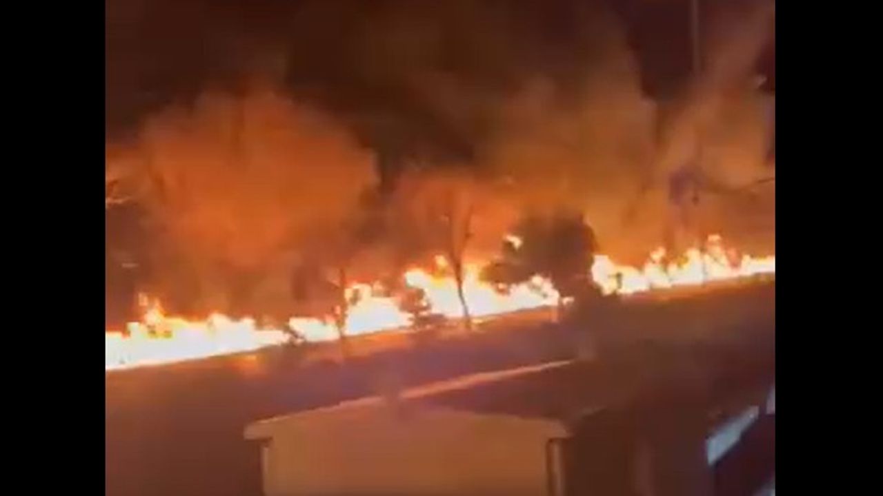 The Rey oil storage facility near Tehran, hit by U.S.-Israeli strikes, is now spreading beyond containment. Oil has seeped into the sewage and drainage system, setting entire streets on fire.