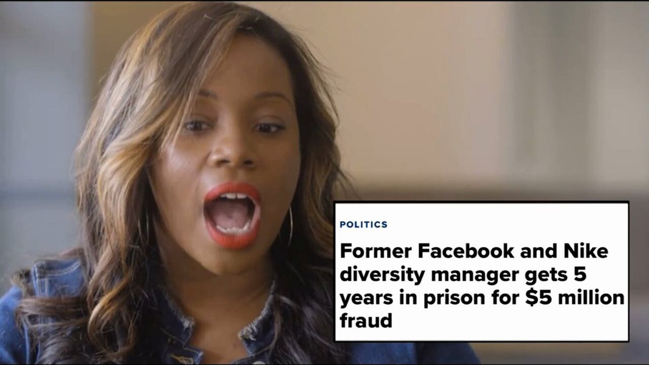 BREAKING: Former DEI manager for Facebook and Nike sentenced to over 5 years in prison for stealing over $5 *million* from the two companies. Shocker.