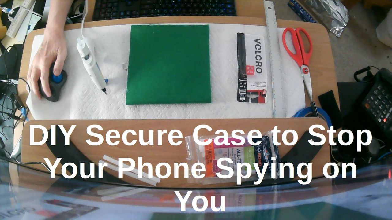 This is a long video (just over 1 hour) demonstrating how to make a visually appealing moderately durable secure case (aka Faraday Bag) to stop your phone from spying on you and tracking you from common materials: aluminum foil, tape, felt or other cloth, and hot-melt glue. The case will block communication with the cellular network and other radio networks.