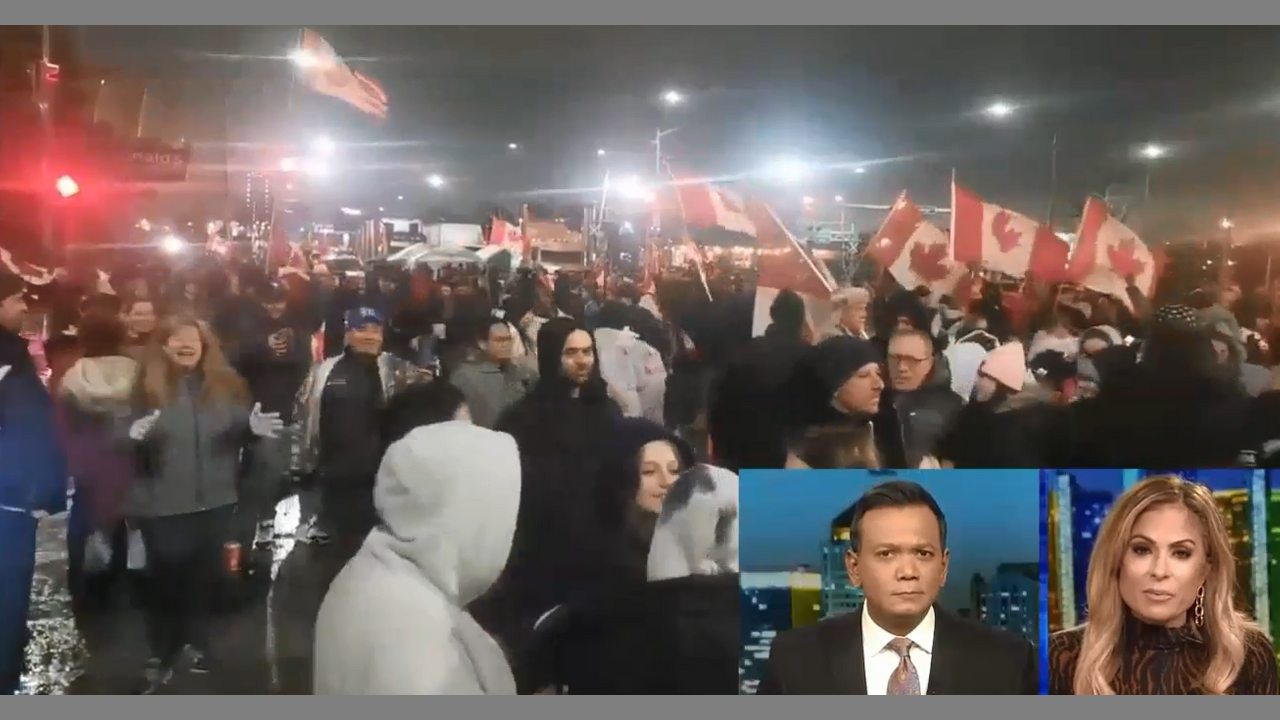 Windsor Ontario Canada Feb 11th 7pm Ambassador Bridge Detroit Shutdown Covid Mandates Protest