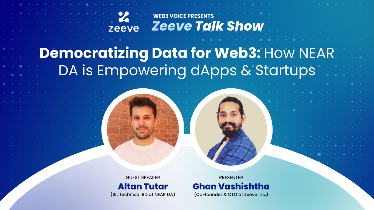 On the 21st of February 2024, Ghan Vashishtha (Cofounder & CTO, Zeeve) sat down with Altan Tutar (Sr. Technical BD at NEAR DA) to discuss “How NEAR DA is Empowering dApps & Startups.” This is the conversation that transpired.