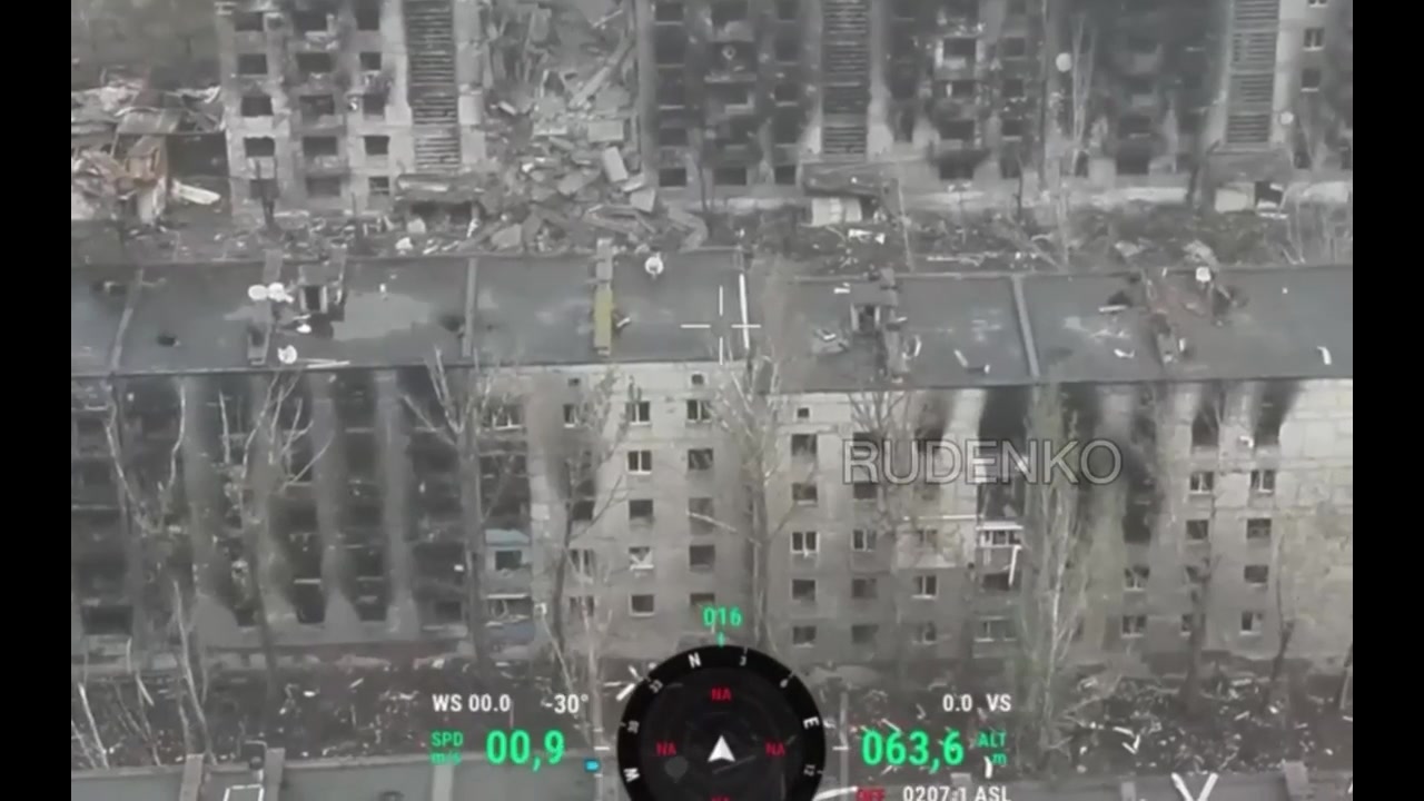 Toretsk. A Russian Armed Forces soldier suppresses a Ukrainian Armed Forces firing point in a residential building using a TM62 mine, which he dropped through a hole in the roof.