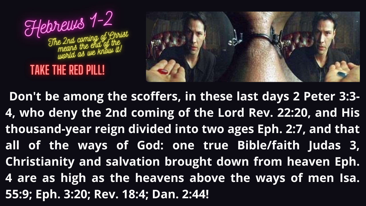 Heb. 1 2. Don't scoff & deny the 2nd coming of the Lord Rev. 22:20; 2 Pet. 3:3-4. God's faith system Eph. 4 is as high as the heavens above the religions of men Isa. 55:9!