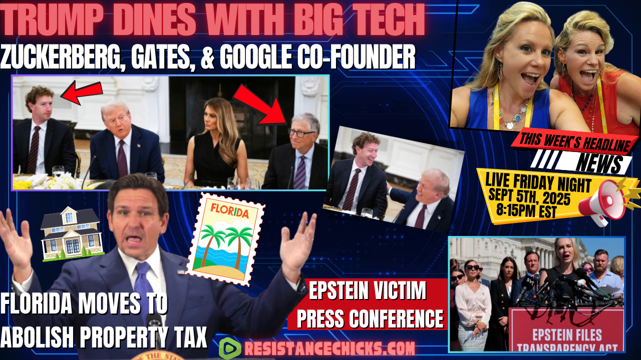 Weekly News Report! What Are the Purveyors of Death & Censorship Doing in the White House? Why is Mr. Vaccine himself, Bill Gates, dining alongside Zuckerberg and the co-founder of Google? Major pushes going on for AI which will lead to control and surveillance. Who needs to hide their name from the Epstein list? Victims meet in the largest press conference in DC this year while Trump doubles down, calling these women and their stories a "democrat hoax," even though the women exonerate Trump himself. RFKJr hits back while being grilled on Capitol Hill. Governor Ron DeSantis is doing what all other governors should be doing- putting a measure on Florida's ballot to end property tax! In more bad news for the Christian music industry, another bombshell article has dropped about Christian Music artist Michael Tait while former 90's hit Christian singer Ray Boltz marries his longtime gay partner. All of that and much more in This Week’s Headline News! Read More: https://www.resistancechicks.com/trump-dines-w-big-tech/