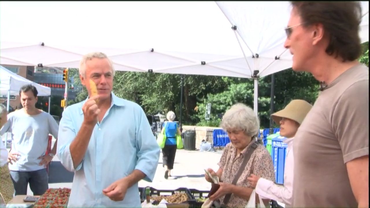 Gary Null with chef David Bouley at the farmers market in NYC