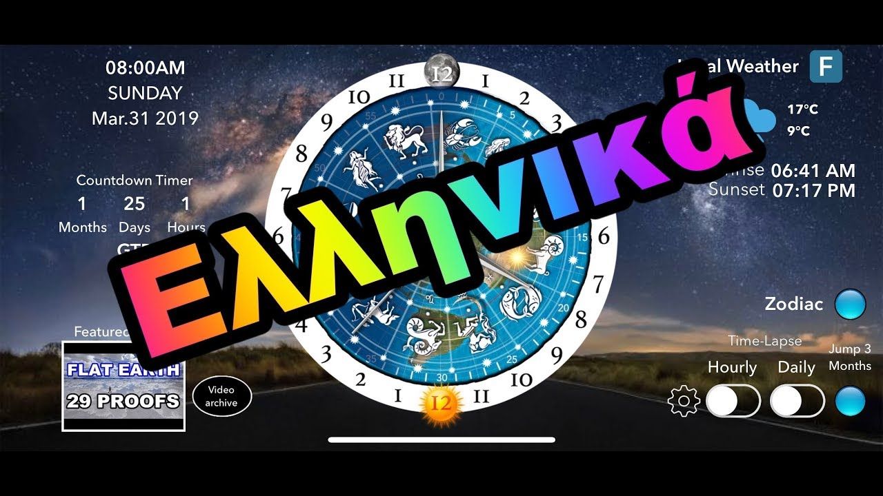 [13 Μαρ 2019] Την Επίπεδη Γη, τον Ήλιο, Τη Σελήνη και το Ζωδιακό κύκλο στην εφαρμογή Ρολόι. - GREEK [Flat Earth Sun, Moon & Zodiac Clock app]
