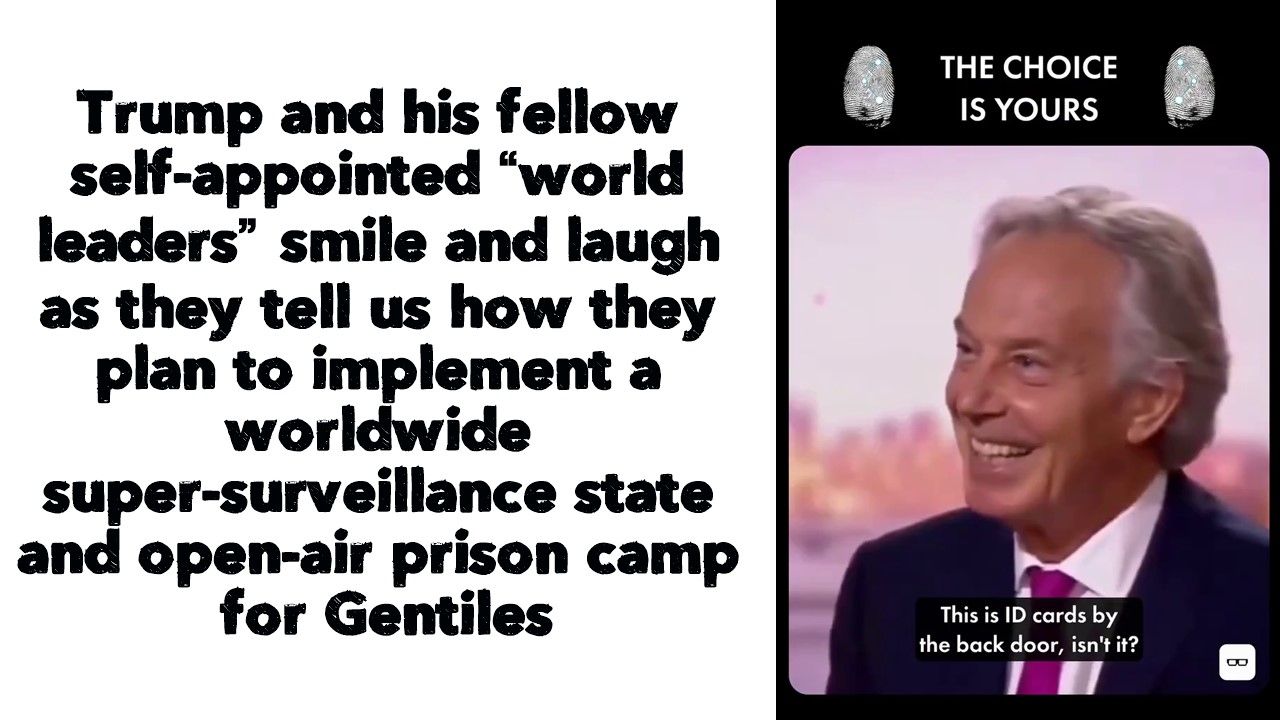 Trump and his fellow self-appointed “world leaders” smile and laugh as they tell us how they plan to implement a worldwide super-surveillance state and open-air prison camp for Gentiles.