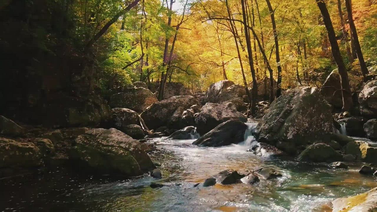 Relaxing fall creek with calming music. Part of a four seasons series.