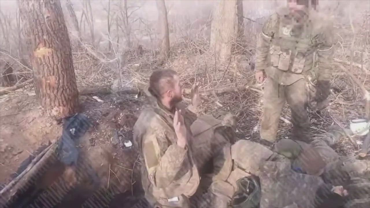 Ukrainian servicemen in the Kursk region surrender to Russian forces.