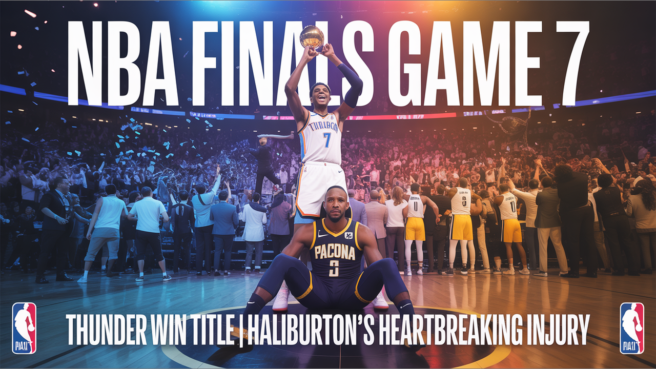 NBA Finals 2025, Thunder vs Pacers, Game 7 highlights, Shai Gilgeous-Alexander, Tyrese Haliburton injury, NBA championship, Oklahoma City Thunder title, Indiana Pacers NBA Finals, NBA playoffs 2025, NBA Game 7 drama