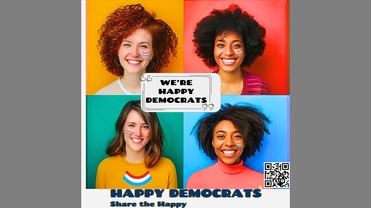 The Happy Democrats campaign is a charitable organization whose mission is to share positive Democratic values through art shareables.