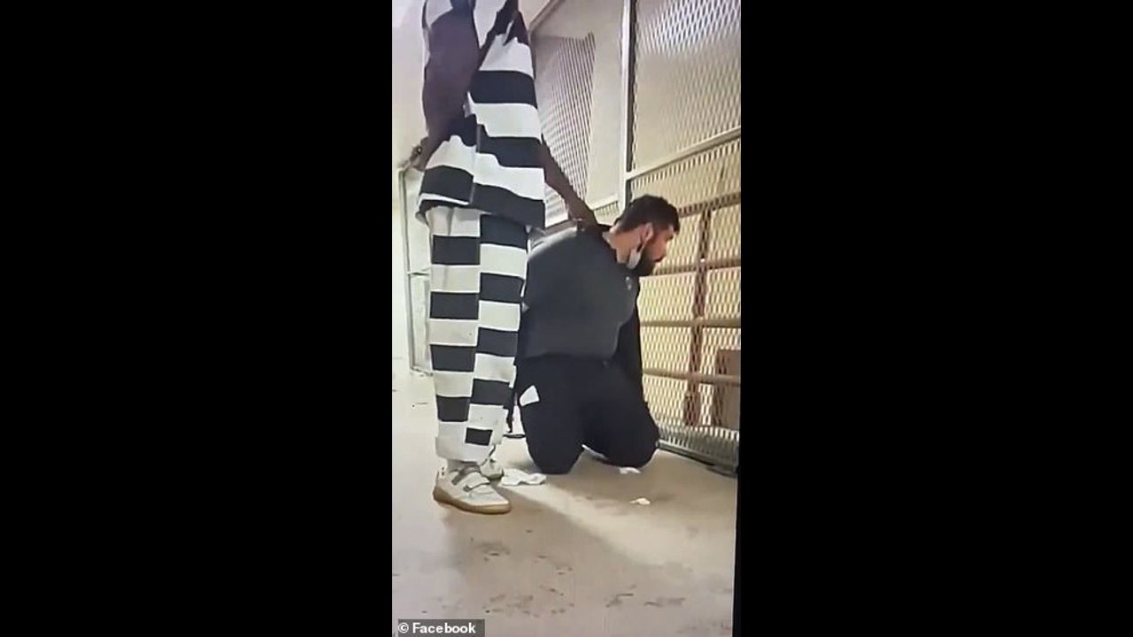 Video filmed by inmates in the Oklahoma County Detention Center showed the unidentified CO being forced to kneel down on the 10th floor on the ground.