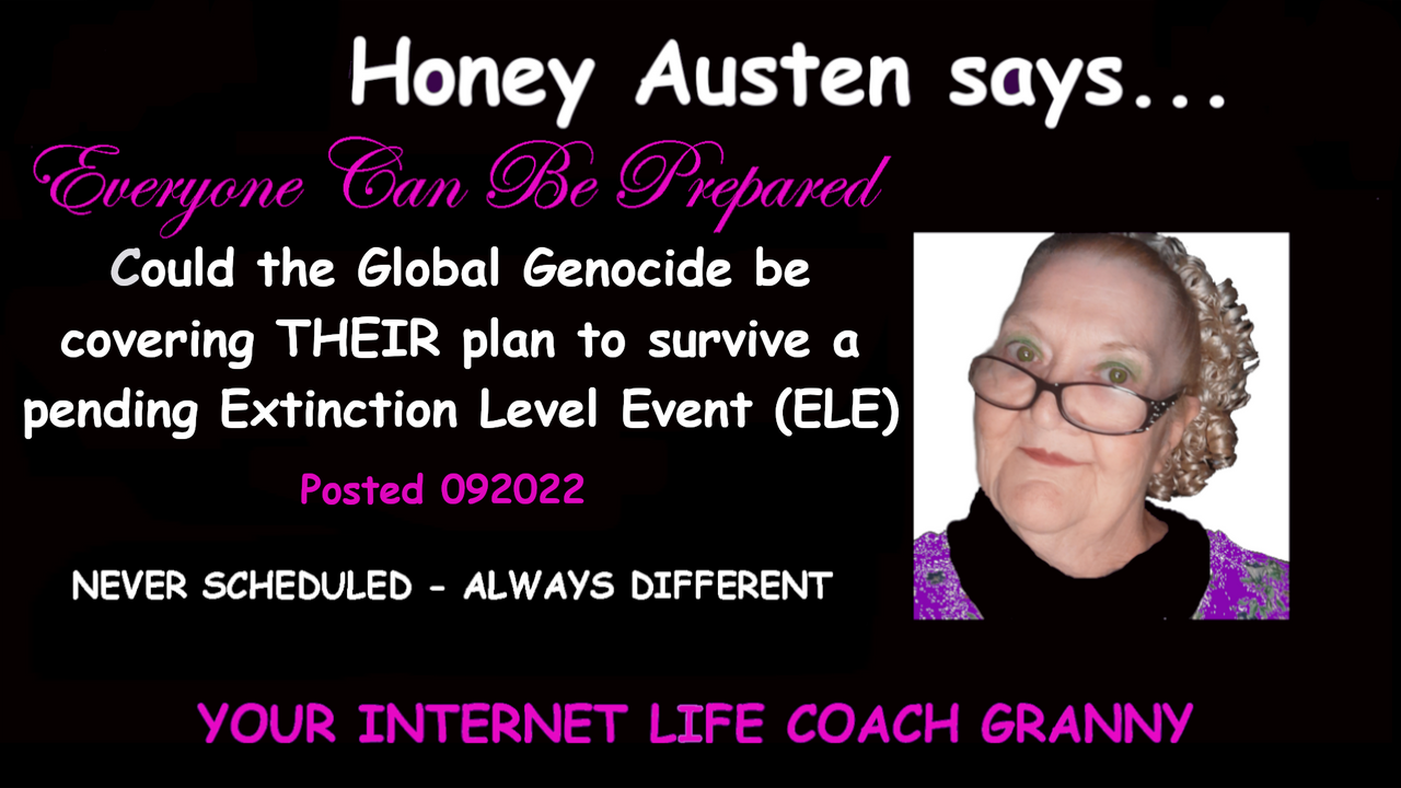 HONEY AUSTEN ASKS COULD THE GLOBAL GENOCIDE BE COVERING THEIR PLAN TO SURVIVE AN ELE. Please leave your comments below... I have presented various theories as to why... why they want us to die. Can the damage be undone? Must billions die over the nest 5-10 years because of THEIR wicked plans. With the jab causing sterilization, in adults and children, is this the end of humanity a we know it? How do we survive?