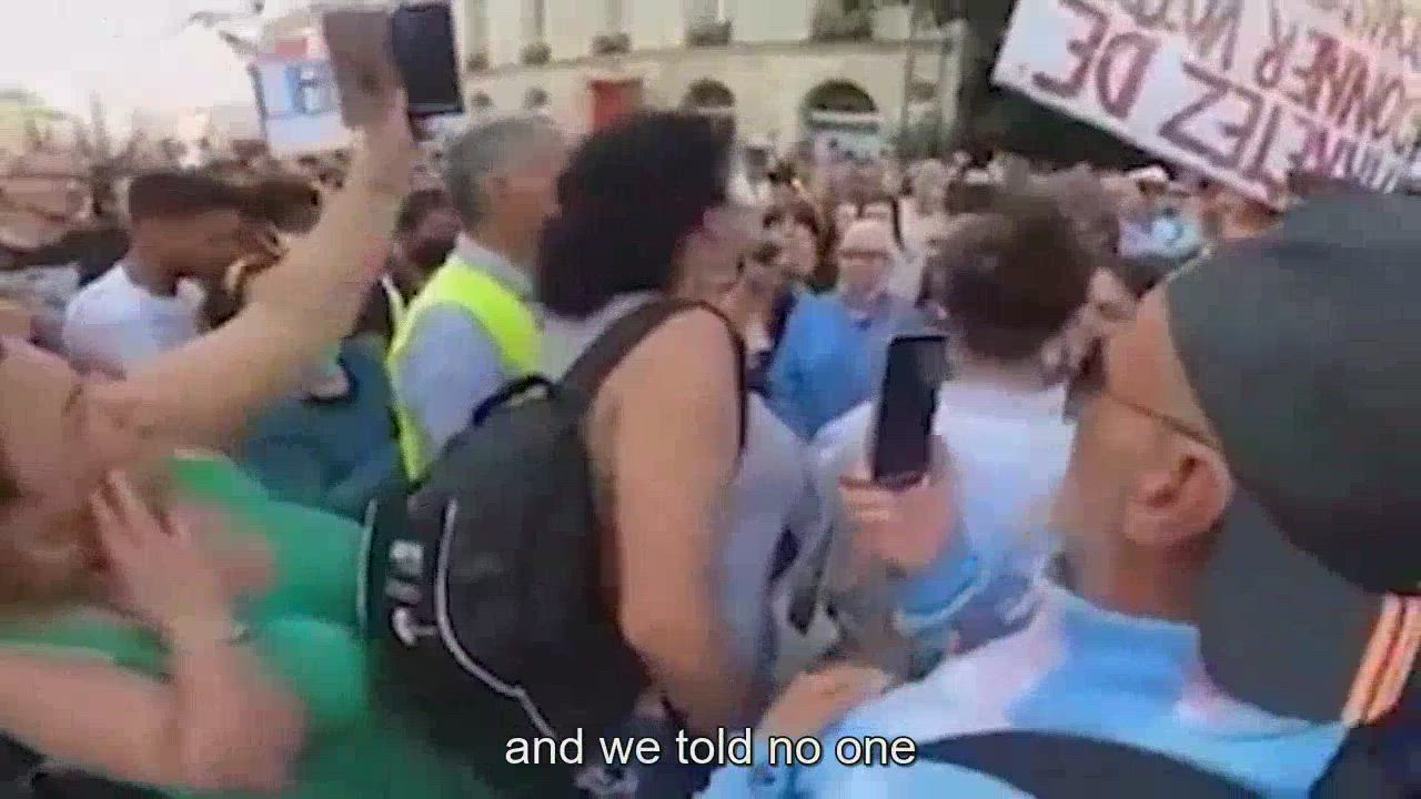 [es] Enfermera enojada equilibra la situación de salud en público durante la protesta