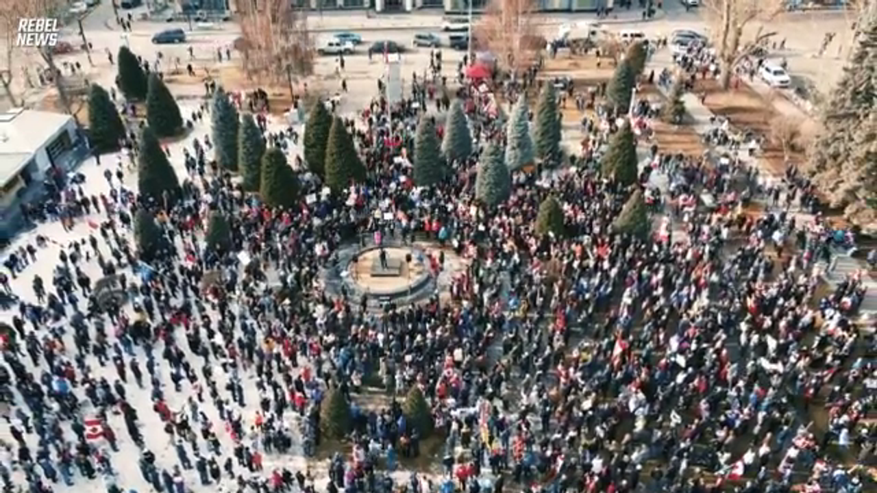 Massive Rally Takes Place In Calgary In Support Of The Trucker Freedom Convoy