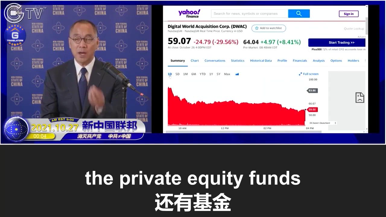 10/27/2021 Miles Guo: The CCP, which is represented by Bruno Wu, is manipulating the sharp rise and fall of DWAC’s stock price, and only President Trump’s supporters are suffering losses