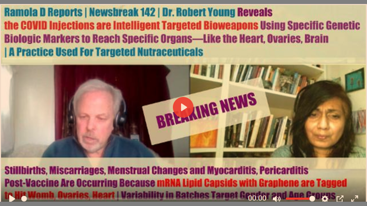 Explosive news that the COVID Vaccines have been biochemically designed to target specific organs, given that they are now causing specific adverse effects involving specific organs--such as the reproductive organs, heart, brain, blood, etc. Dr. Young shares his experience over 40 years of formulating targeted nutraceuticals which use specific polynucleotides--genetic material, taken from animal tissue--to send herbal nutrition to specific organs; it is this same methodology, he says, using fetal organ cells and animal organ cell lines, undisclosed, kept hidden as trade secrets, which is being used in vaccines for a deleterious purpose, to harm and sterilize. Variability of toxicity across batches and selection of batches for targeted reasons--labelled, recorded, and structured by the vaccine-maker scientists conducting these horrific experiments--is the other end of this scenario. This is why we are seeing a rise in myocarditis in boys taking the vaccine, and miscarriages and menstrual changes in women taking the vaccine. This information is borne out by Professor Sir John Bell of Oxford who was recorded saying that 60-70% sterility is intended by the vaccines. Dr. Young also reads a powerful statement summing up the ongoing experimentation and transhumanizing agenda and encourages people to stand up, to say NO, to not comply with diabolical military and bankster agendas to insidiously destroy humanity.