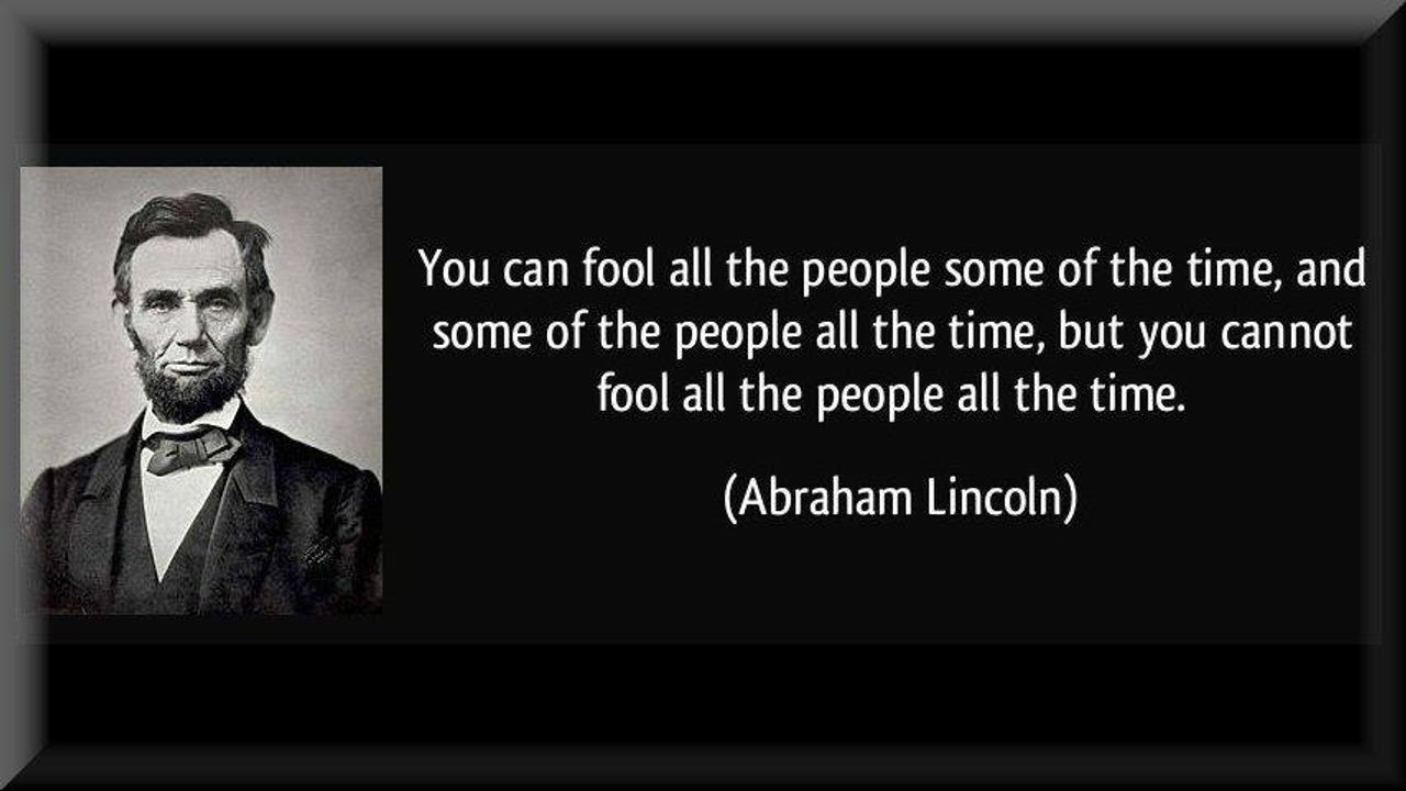 "You can fool all of the people some of the time, and some of the people all the time, but you cannot fool all the people all the time." ~ Abraham Lincoln