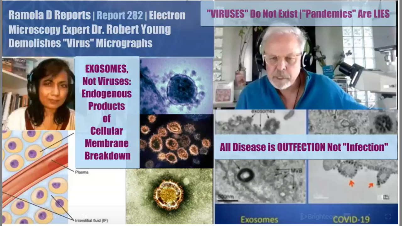 EXCLUSIVE: Dr. Robert Young, a 40-year electron microscopy expert and biochemist and nutrition scientist examines the "virus" micrographs published by governments and health "authorities" and describes what they really are: exosomes or repair proteins which are a by-product of cell membrane breakdown in the presence of chemical toxins or radiation assault, despatched by the body's innate intelligence system to prevent internal bleeding and activate a protective clotting mechanism in the process of removal of toxins and self-healing, wrongfully identified by many in Science, Microbiology, and Public Health as viruses.