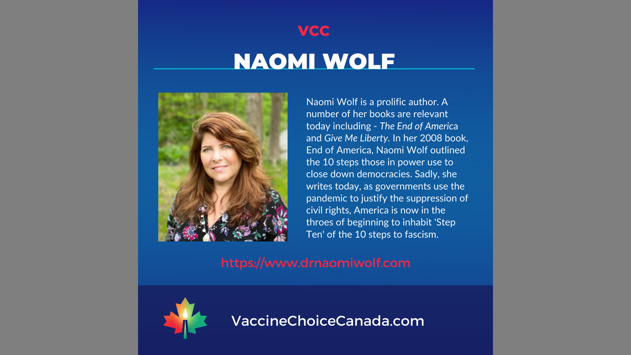 Naomi Wolf is the prolific author of such books as The End of America and Give Me Liberty. She warns, as governments use the pandemic to justify the suppression of civil rights, that we are in the throes of ’Step Ten’ of the 10 steps to fascism. It is URGENT that we act immediately to end the takeover of our freedoms and bodily autonomy.