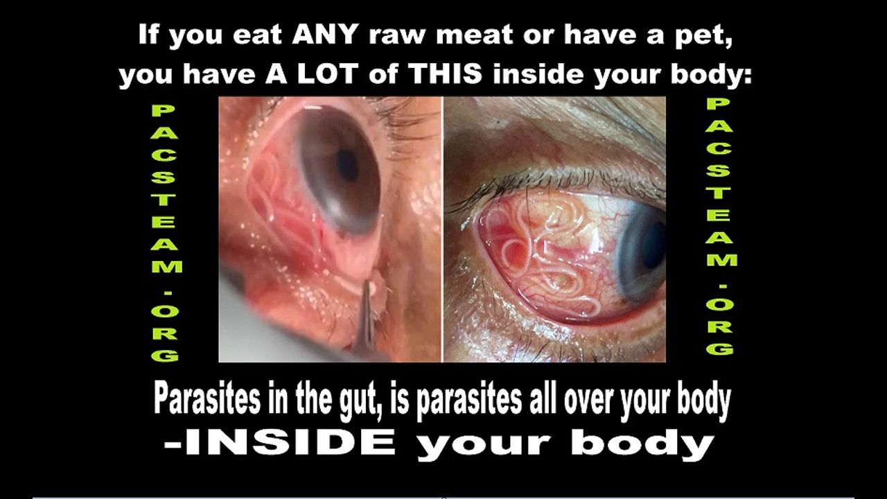 Parasites are a very real health issue world wide - that almost NO ONE is talking about - But yes, eat more green, not because of "the climate" but because it will help people getting rid of nasty crap like hookworms inside your gut and much more nasty stuff. NEVER eat ANY raw meat and stay away from live animals as much as possible or at least be very aware of your hygiene when it comes to animals.