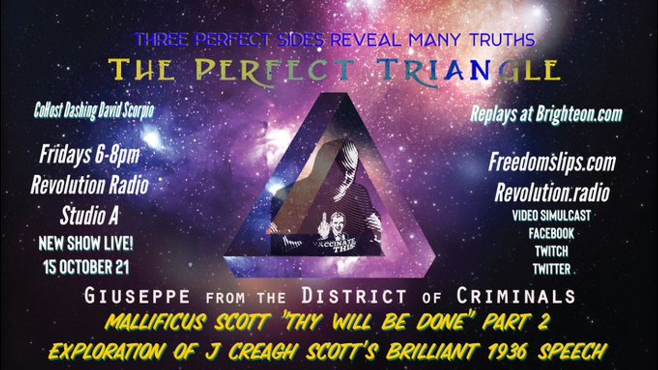 The Perfect Triangle #66 Guest Mallificus Scott "They Will be Done" Part 2 of Grandfather J Creagh Scott's brilliant and prescient 1936 speech. Daryl Wayne joined on for hour 2.