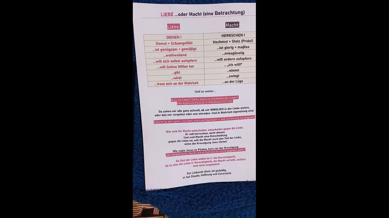 Wer sich für Macht entscheidet, entscheidet gegen die Liebe. Ausser natürlich, er übt Macht mit Liebe aus... Doch wer verleiht Macht? Ein etwas längeres Kurzvideo dazu hier: https://www.youtube.com/watch?v=LjaumJhlsW8