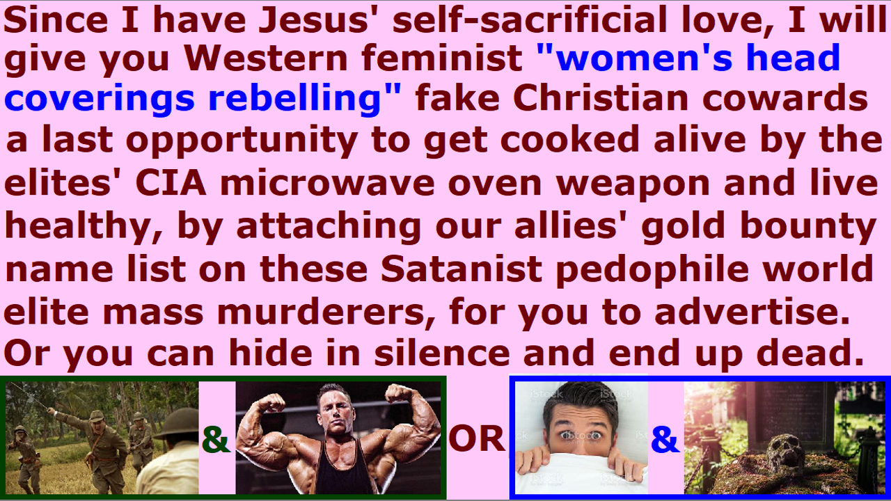 Satan Lucifer usurped the Church by creating millions upon millions of churches and flooding them with millions and millions of “Bible redefining” “women’s head coverings rebelling fallen angel head controlled” “Satan Lucifer’s 1840s to 2020s cross-dress-project men’s trousers cross-dressing” “unbiblical 10% salary tithe taxing” religious Christian freak hordes of Sananda Jesus and Jezebel. Obviously, the millions and millions of religious Christian freaks will all go to Satan Lucifer’s fake churches, which teach “women’s equality” and “no need for women’s head coverings” and “alright to cross-dress in men’s trousers” and “if you give fake unbiblical 10% salary tithes taxes to the pastors, then God will bless you more, instead of losing everything including family and home, and getting gang-stalked and cooked alive with CIA microwave oven weapons from next door rooms and homes, so that you would be truly blessed by God.” Since the 1960s Illuminati “Flower Children” New Age Wicca witch “humanism” “political correctness” “women’s equality” “Atlantis Hellenistic Satanism Western values” infiltration of human society by hundreds of millions of fallen angel devils incarnate avatars and nephilim & chimera alien incarnate avatars that have come through the star gate wormhole portals opened up by Baal Moloch abortion clinic temple sacrifice rituals, each consequent generation of their children have become more evil and evil, so that has now allowed 33.3% of the Western feminist nations to be infiltrated by avatars and clones and hybrids and werewolves and androids and other LGBTPB (Lesbian Gay Bisexual Transvestite Pedophile Bestiality) orgy child sex magick spirit cooking ritual pedophile cannibal Satanist life forms. They are now ready to exterminate the rest of the 66.6% of the Western feminist nations’ humans, and replace them. The entire world’s number of non-humans is 20.8% of the population. They have filled the world with their feminist pedophile cannibal witches’ Hollywood movies and horror movies and satanic video games and feminist Satanist Jezebel media and LGBTPB pedophile school education starting at 4 years of age. They have kicked out the 1950s Christian great grandparents’ school prayers and Ten Commandments out of the church. Satan Lucifer only allows his ordained and allowed and trained church pastors to take over the fake “pastor” jobs, which are not biblical jobs, but they are the devil’s political commissar information monopoly dictators with nice personalities but with rotten Jezebel-spirit-filled hearts or most often now non-human pedophile cannibal Satanist demon spirits wearing hybrid human avatar bodies. They are using the Christian churches to feed our real Christians’ private information to the Satanist headquarters and to Billy Graham and Katy Perry’s father’s Vatican Satanist Evangelical Council, in order to try to kill and cook all of us real Christians with CIA microwave oven weapons from next door homes and rooms. These religious dictators called “pastors” are normally a group of low-level caretakers in a church, according to the Bible, but they have usurped and thrown out the real Christian apostles and elders. The millions of religious Christians all flock to these Satan Lucifer’s pastors, who teach them “no women’s head coverings” and “Old Testament Law Hebrew race Levitical priest 10% grain and produce tithe in the form of stolen money to the pastors.” They change the Word of God for their human traditions, in order to attract the millions and millions of reprobate degenerate religious Christian freaks to their Western feminist nations’ churches owned and operated by Satan Lucifer’s religious system, and they kick out God’s apostles and prophets and Jesus, and make the people they gather to themselves worship their beloved idols Jezebel and Sananda Jesus.