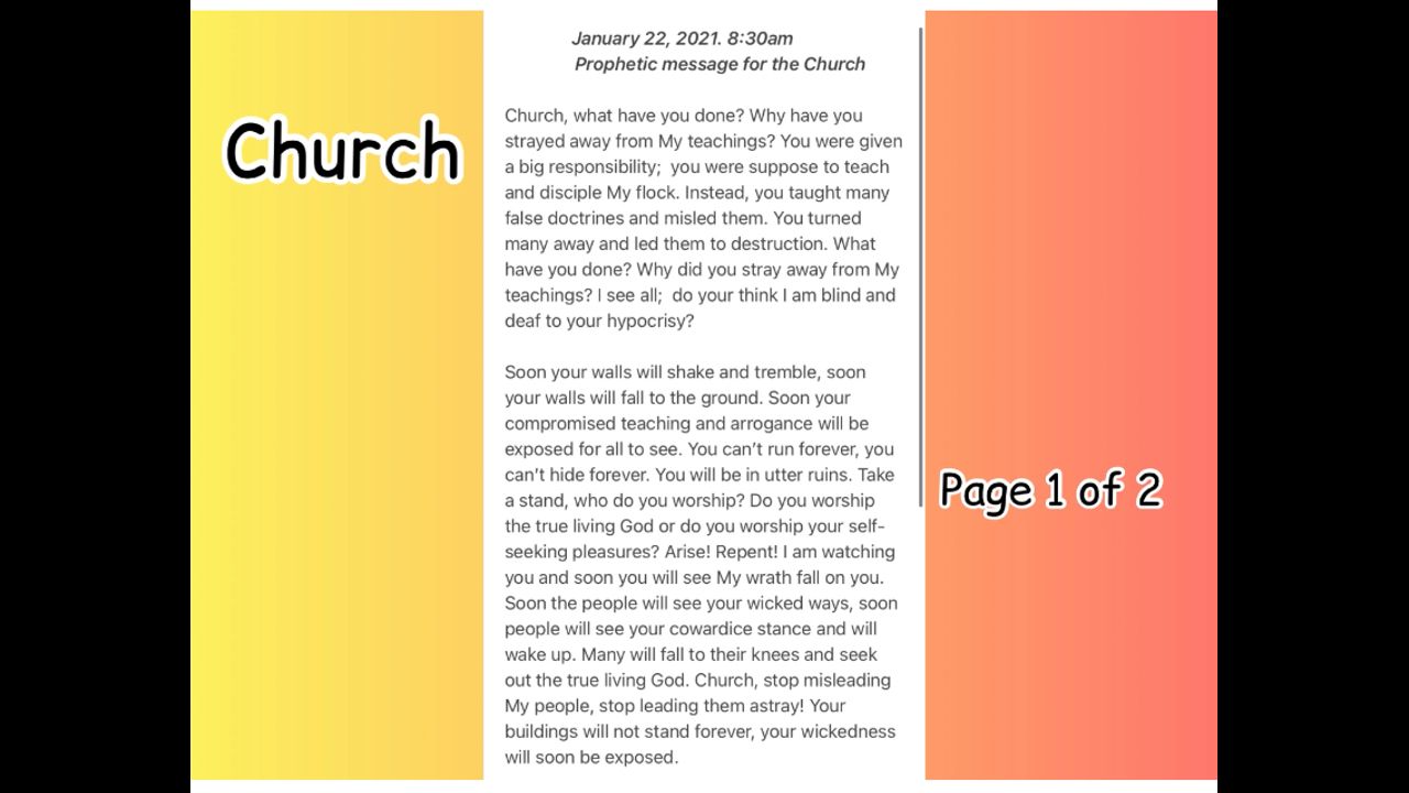 Prophetic warning for the CHURCH; wake up!!!! God’s wrath is coming.. January 22, 2021