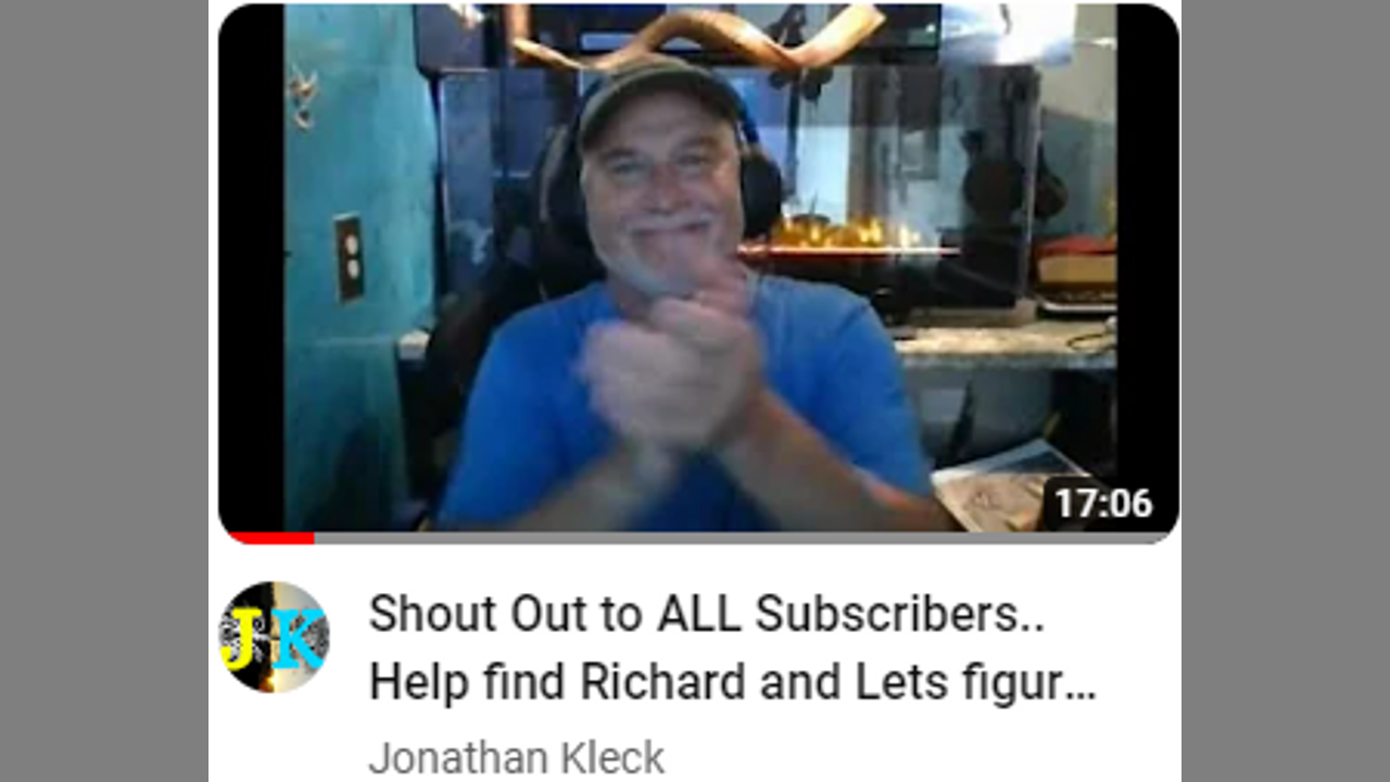 Quotation from original video description….”Apparently Richard is Missing and there are some strange circumstances that need to be addressed and PLEASE Pray for the Safe Return of Richard.."