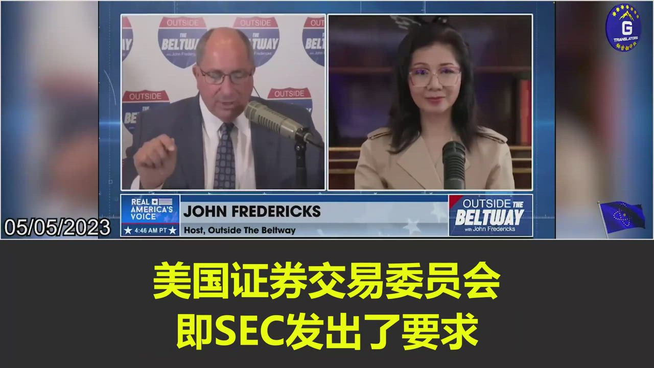 5/5/2023 【妮可做客the Outside of the Beltway John Fredericks Show】妮可:在过去的几十年里,SEC让上百家中共国企包括中共军方企业在美国上市,并对中共这些企业实行与美国和其他国家企业不同的监管标准,所以不能相信SEC
