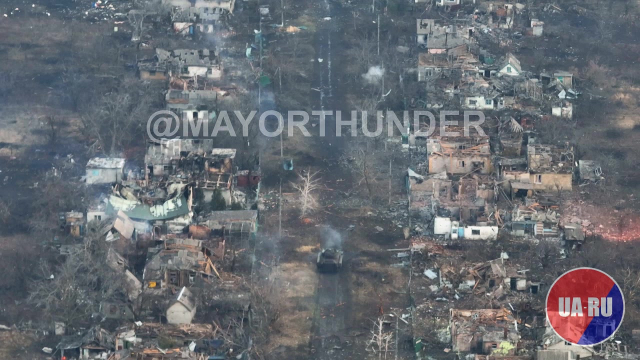 🎬 In the video, the southern bridgehead of the Russian army in #Avdeyevka is one of the outlying three streets located behind the "Tsarskaya Okhota" (Tsar's Hunt).