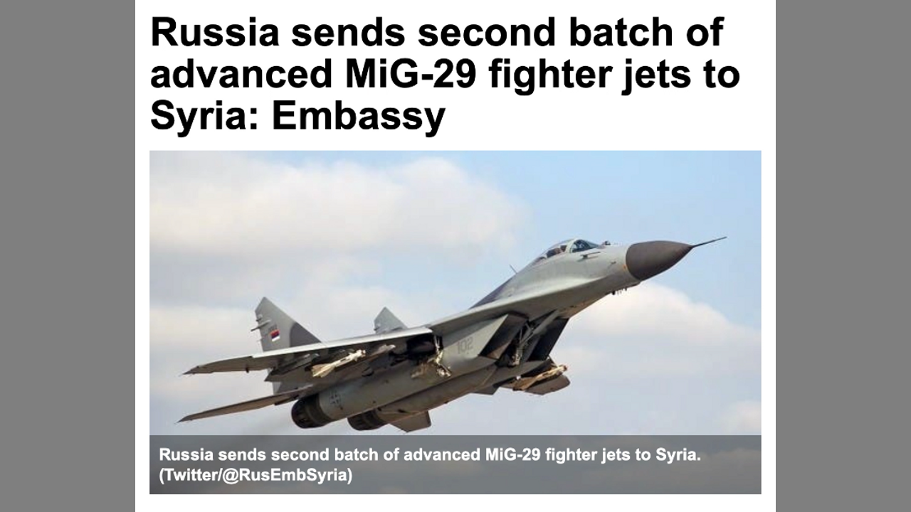 1) https://english.alarabiya.net/en/News/middle-east/2020/06/04/Russia-sends-second-batch-of-advanced-MiG-29-fighter-jets-to-Syria-Embassy