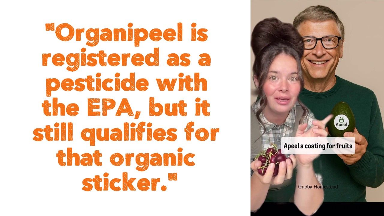 "We all know that Bill Gates launched a product called Apeel—a coating for fruits and vegetables that abnormally extends shelf life—but did you know there is an organic version called Organipeel that is sprayed on your organic produce?"
