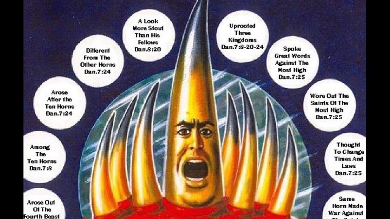 "The three divisions which were plucked up where the Heruli in 493 the vandals and 534 and the Ostrogoths in 538. Justinian, the emperor, who we see was at Constantinople, working through the general Belisarius, was the power that overthrough the three kingdoms represented by the three horns, and the reason for their overthrow with their adherence to Arianism in opposition to the orthodox Catholic faith." - the book of Daniel, page 109