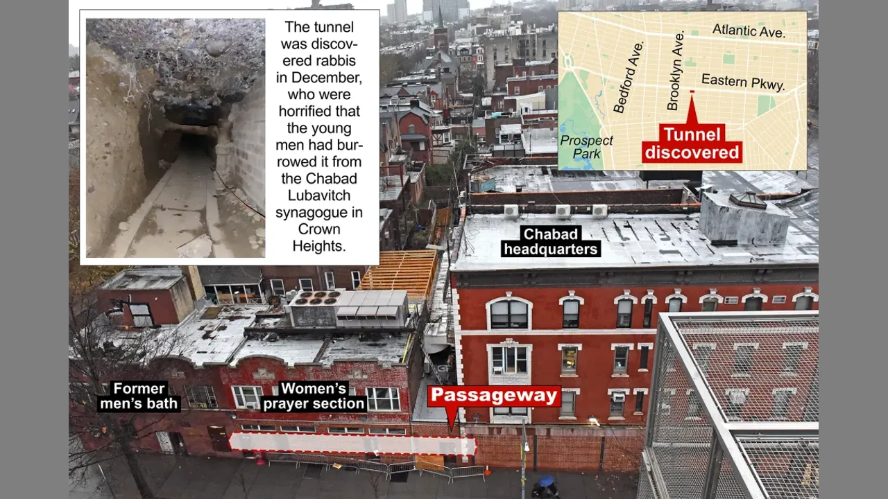 Thumbnail: https://nypost.com/2024/01/09/news/video-reveals-extent-of-bizarre-tunnel-under-brooklyn-synagogue/