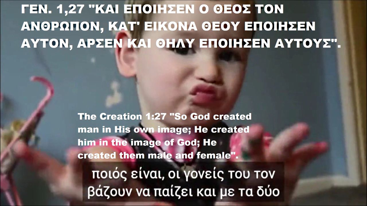 ΓΕΝ. 1,27 "ΚΑΙ ΕΠΟΙΗΣΕΝ Ο ΘΕΟΣ ΤΟΝ ΑΝΘΡΩΠΟΝ, ΚΑΤ' ΕΙΚΟΝΑ ΘΕΟΥ ΕΠΟΙΗΣΕΝ ΑΥΤΟΝ, ΑΡΣΕΝ ΚΑΙ ΘΗΛΥ ΕΠΟΙΗΣΕΝ ΑΥΤΟΥΣ".