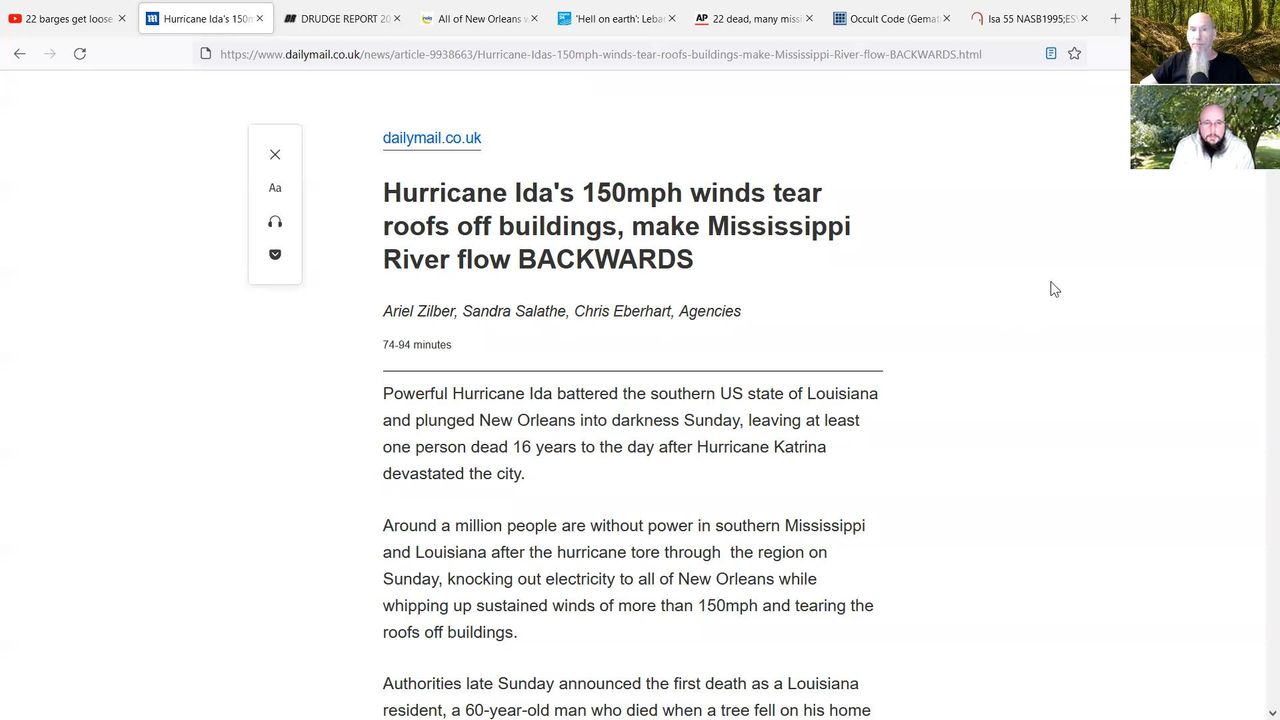 In this video we give our attention to a "flood" of 22 numbering in recent disaster news. We also feature a report of how Hurricane Ida made the Mississippi river flow in reverse! Water as time!