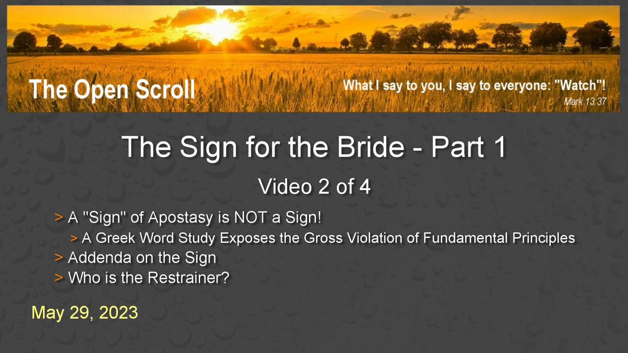 This is the 2nd (of 4) video presentations covering our recently refreshed legacy study, "The Sign for the Bride - Part 1."