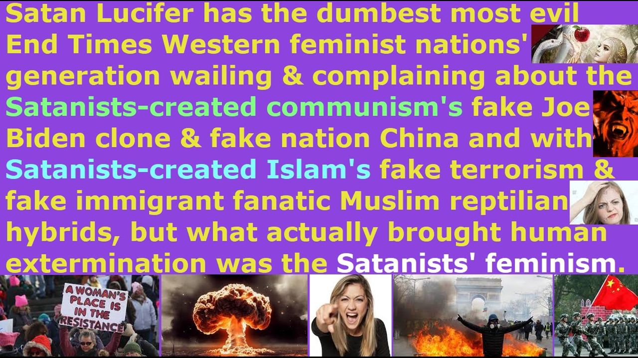 *** Intelligence news update from the Human Homo-Sapiens Race Survival Resistance (HRSR) headquarters and Republic Rebel Alliance battlefront (July 2023). Satan Lucifer’s Draco reptilian chimera fake alien incarnate avatar black nobility families and earth’s hidden matriarchal rulers’ reptilian hybrid pedophile cannibal Satanist witch feminists’ communism and Islam are just instruments of destroying the formerly Christian Western nations and Christianity, but it is the Satanists’ feminism that actually destroyed the Western nations. They have the End Times most dumbest wicked Western feminist nations’ hippy’s grandchildren generation “Bible verses redefining, women’s head coverings rebelling, fallen angel head controlled” fake Christians and fake pastors wailing & crying & screaming & fighting & complaining & criticizing & focusing on the Satanists’ Islam and the Satanists’ communism as threats to their Western feminist nations, with the Democrat communist party’s empty clone President Joe Biden and the manufactured reptilian hybrid & ape hybrid invasion force rioting Islamic radical illegal immigrants, but their true enemy that has brought in all these invasion forces into their nation to exterminate their human specie populace is the “female rebellion witchcraft demon spirit Jezebel” and the earth’s hidden matriarchal rulers reptilian hybrid pedophile cannibal Satanist witch feminists that runs their own Western feminist nations’ millions of churches, along with their millions of fake Christians and fake pastors who sabotaged and destroyed their nations and removed all of God’s spiritual protection and brought back all these demon spirits in cloned hybrid human-looking avatar bodies from the abyss by redefining hundreds of Bible verses to replace Jesus with hundreds of fake foreign gods & idols. They are blind fools. The ones who caused the problem are blaming the problem. The ones who released the demons are blaming the demons. Satan Lucifer’s “ordained & allowed & trained & non-assassination-attempts-receiving” fake unbiblical job position pastors will not preach this, because it would self-incriminate themselves as being the instigators of Satan Lucifer’s evil plan, and it would make their church donators angry at them so that their 99% church donators will form a mob riot to stone them or crucify them. They are servants of Satan Lucifer and not God. These fake pastors and fake Christians created the problem and their own extermination, and they also hide the cause of it, and they also do not repent of it. This is triple blood of the 6 billion humans on their hands. Woe to these Western feminist nations’ millions of fake pastors and fake Christians, because God holds them accountable for destroying the 6 billion humans, and not the Satanists’ communism or the Satanists’ Islam responsible for the destruction. These are only instruments that the Satanist demon spirits and Satanist fallen angel devils use to destroy the Christian nations and Christianity. The true instrument that the Satanist demon spirit incarnate avatar globalist elites and Satanist fallen angel fake alien incarnate avatar globalist elites use to allow communism and Islam to come into their Western feminist nations to destroy the nation and human specie populace is their Satanists’ feminism. That is the core of the problem, because it destroyed the Church which is supposed to be the guardian of planet earth, and it destroyed the family unit and society, and it destroyed God’s spiritual protection over the Western feminist nations. The fake Christians and fake pastors are responsible for the extermination of the entire human specie. God holds them responsible, and not Satan Lucifer and his fallen angels and demon spirit globalist elites.