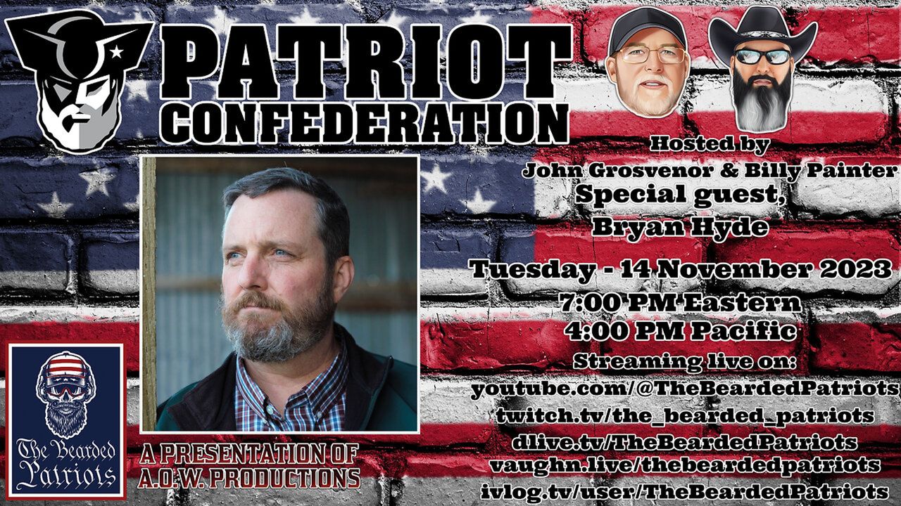 Every patriot has an obligation to question authority. Those who are honest are not concerned with your watchful vigilance and those with integrity are not concerned with your discernment. Every American is obligated to voice their concerns and stand up for their freedoms and liberties. Ladies and gentlemen, we are the men in the arena, we are the Patriot Confederation! Proudly hosted by John Grosvenor and "Bad Billy" Painter! This week Bryan Hyde joins the show.