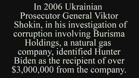 In 2016 Ukrainian Prosecutor General Viktor Shokin, in his investigation of corruption involving Burisma Holdings, a natural gas company, identified Hunter Biden as the recipient of over $3,000,000 from the company.