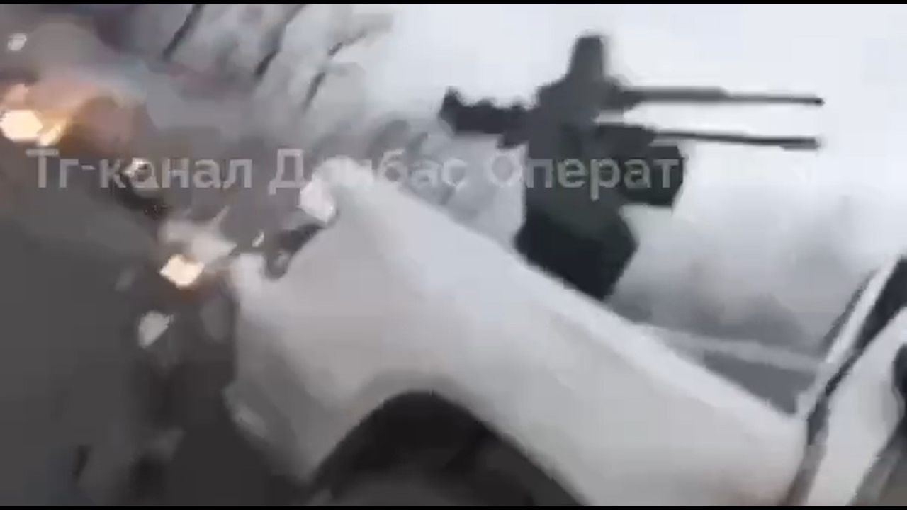 Double machine gun mounted on back of truck.